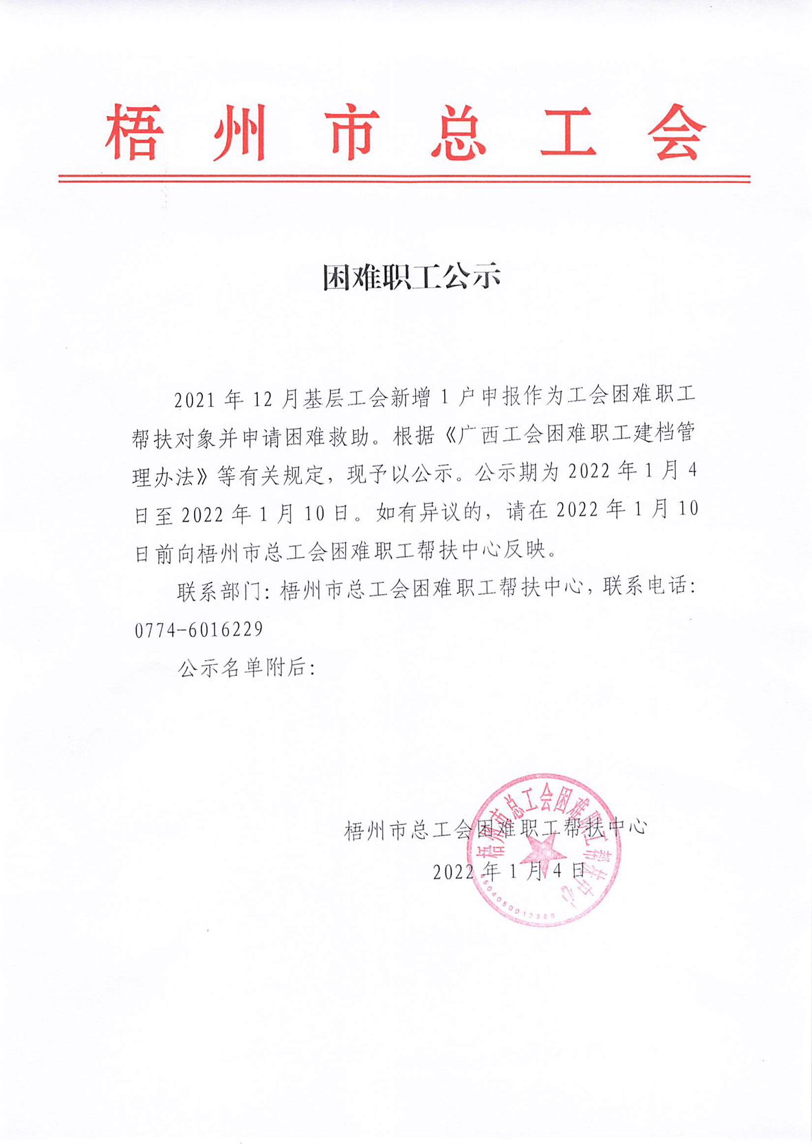 來源:梧州市總工會   作者:   瀏覽:次   發(fā)表時間:2022-01-04 17:34:16