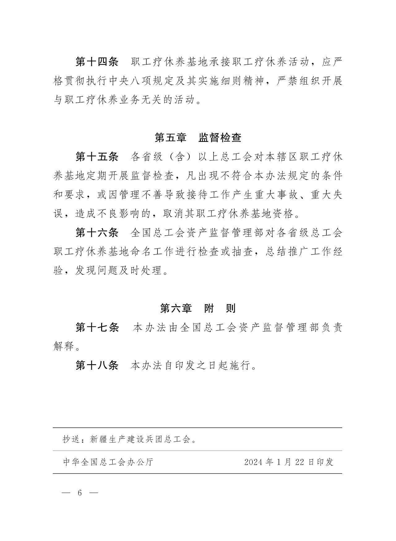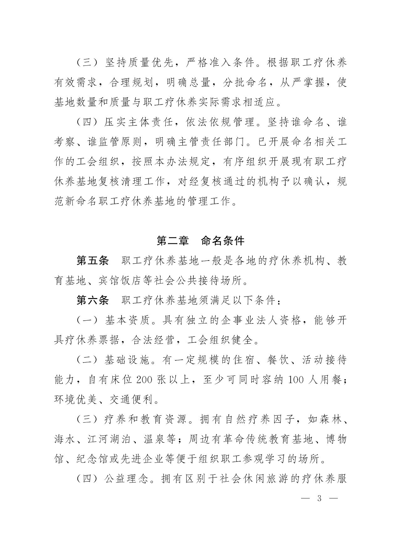 《辦法》明確,職工療休養(yǎng)基地是工人療休養(yǎng)院功能的補(bǔ)充和拓展,由各省級(jí)(含)以上總工會(huì)根據(jù)工作需要命名。基地命名應(yīng)堅(jiān)持立足功能定位,突出療休養(yǎng)功能;利用社會(huì)資源,服務(wù)職工群眾;堅(jiān)持質(zhì)量?jī)?yōu)先,嚴(yán)格準(zhǔn)入條件;壓實(shí)主體責(zé)任,依法依規(guī)管理的原則。
