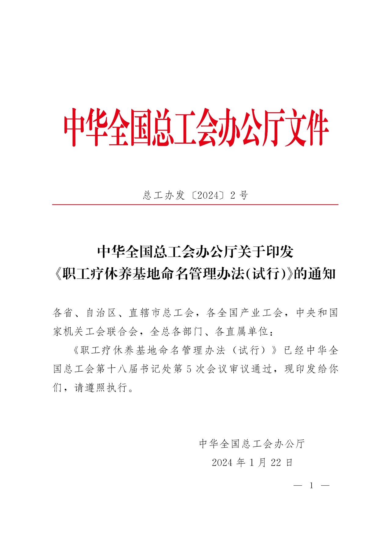 近日,全國(guó)總工會(huì)辦公廳印發(fā)《職工療休養(yǎng)基地命名管理辦法(試行)》(以下簡(jiǎn)稱《辦法》),以規(guī)范職工療休養(yǎng)基地命名管理,維護(hù)職工療休養(yǎng)權(quán)益,推動(dòng)職工療休養(yǎng)事業(yè)實(shí)現(xiàn)高質(zhì)量發(fā)展,提升職工生活品質(zhì)。
